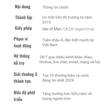 Với sự phát triển chóng mặt của các sảnh cược khiến người chơi dễ dàng mang nếu không nắm rõ về nền tảng đó. Ngay dưới đây là toàn bộ thông tin về thương hiệu uy tín của chúng tôi.